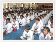 Martial ArtsSpecial training is being imparted to our Children in Karate, Taken Do, Sillambam by Mr. Sukumar where the children demonstrated many art forms on the occasion of our sports day. Our children brought many laurels and accolades in this art forms. Maduvinodan and Muthukumar are the state awardees in Karate. We are proud to have AjithKumar who is going to attend the international level competition in Singapore.