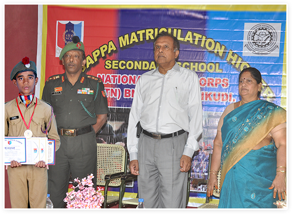 A NEW HORIZON with a bubbling energy and a long passion C. Hariharan, 9th standard, NCC student stand as testimony of Alagappa Matriculation Higher Secondary School, Karaikudi. He represented NCC in Inter Group Competition (IGC) – TSC – Shooting at Madurai Agricultural College. It went on with many levels. He bagged the First Prize – Gold Medal in state level. It is not an essay task but with the great motivation given by the school and training under the command by Commanding Officer Col John Louis Raj and PI staff of 9(TN) BN NCC, Karaikudi and the support of his parents Mr. R. Chellam and Mrs. C. Thamaraiselvi achieved the target.